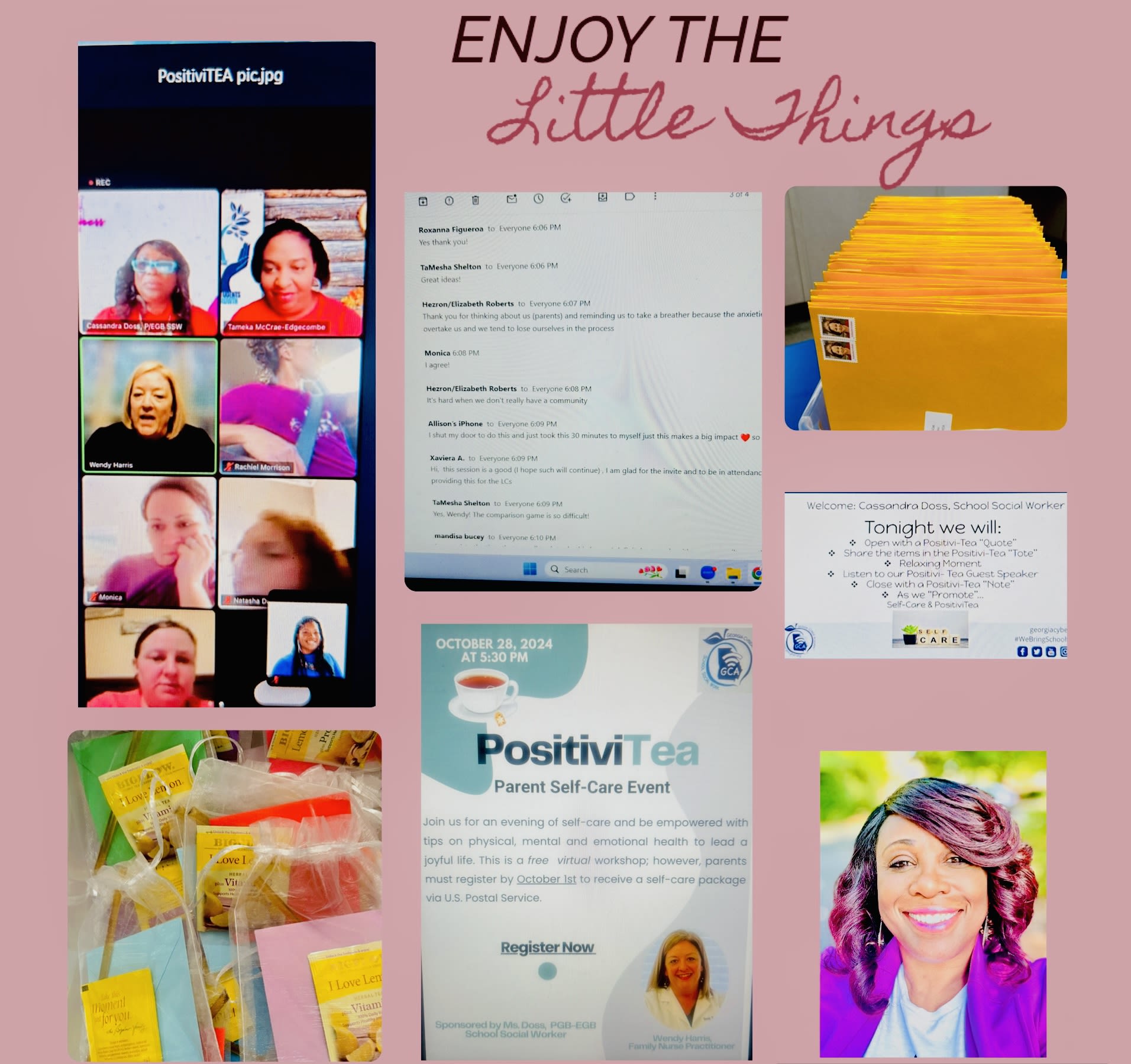 GCA social workers mailed 71 self-care packages and orchestrated a virtual event for parents and families. Through careful coordination of logistics and tracking to make sure each package reached its recipient before the event date, the 1st virtual PositiviTEA resulted in parents attending a school event, enjoying their tea, and actively engaging in self-care. Many provided encouraging feedback, expressing a desire for the event to continue in the future.